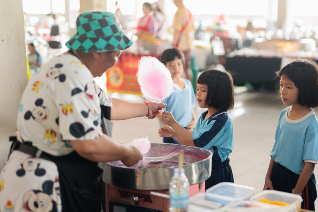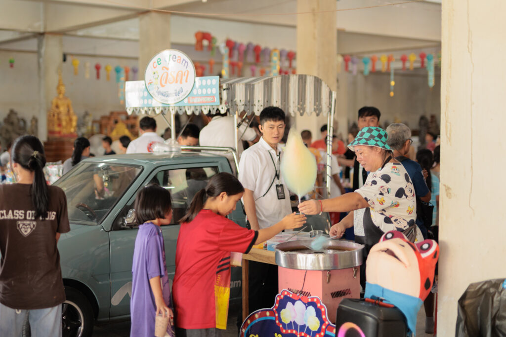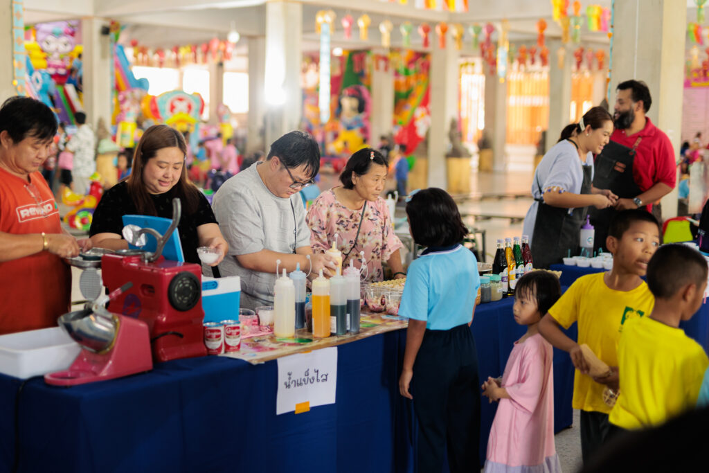 ภายในงานมีการจัดเตรียมอาหาร ของว่าง และขนม พร้อมกิจกรรมที่เปิดโอกาสให้น้องๆได้รับ